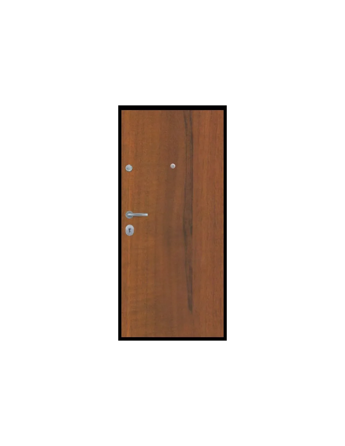 Il pannello interno in Noce Medio dona calore ed eleganza agli ambienti, mentre il pannello esterno in PVC garantisce resistenza agli agenti atmosferici e facilità di manutenzione.