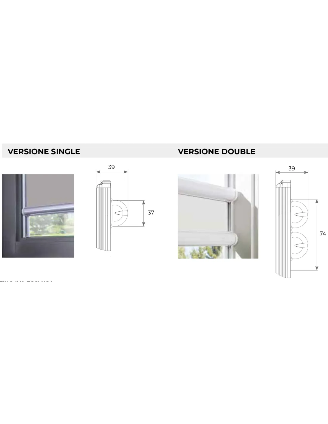 Nanoblind Single/Double è una tenda tecnica da interno a rullo frizionata, progettata per integrarsi con l’infisso. L’installazione è semplice e immediata grazie all’applicazione adesiva direttamente sul vetro. È compatibile con teli filtranti o oscuranti, ideale per diversi ambienti. Disponibile di serie con cassonetto Single per altezze fino a 140 cm oppure cassonetto Double per altezze fino a 180 cm.