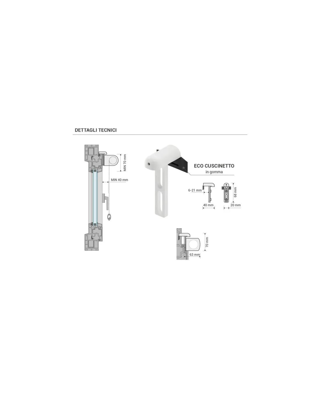 Progettata per dimensioni massime L 140 x H 160 cm, è dotata di tubo in alluminio lega 6060 Ø 28 mm e supporti in PVC colore Bianco RAL 9010.