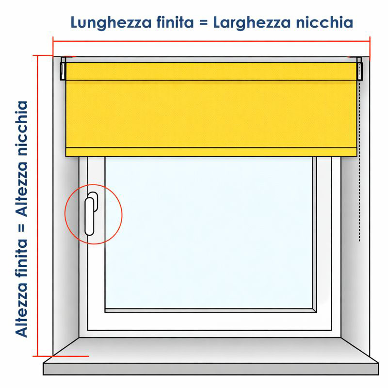 Il comando è a catena in PVC bianca, posizionata di serie sul lato destro. Installazione possibile a soffitto o a parete.