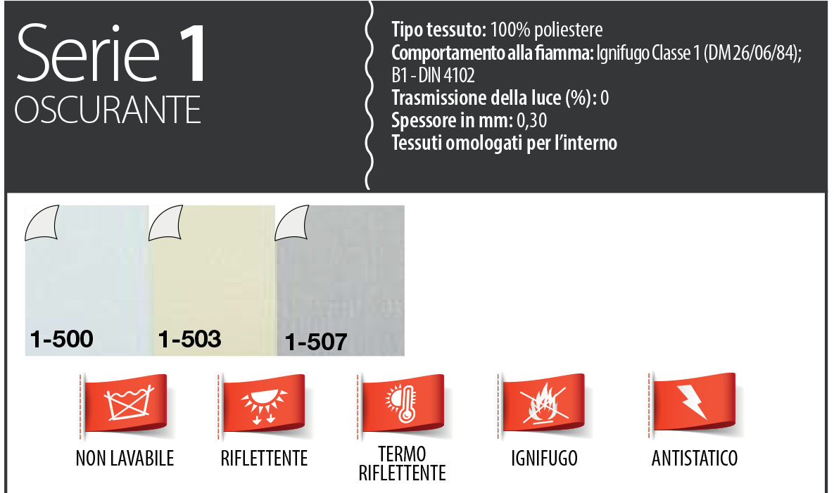 Comportamento alla fiamma: Ignifugo Classe 1 (DM 26/06/84);