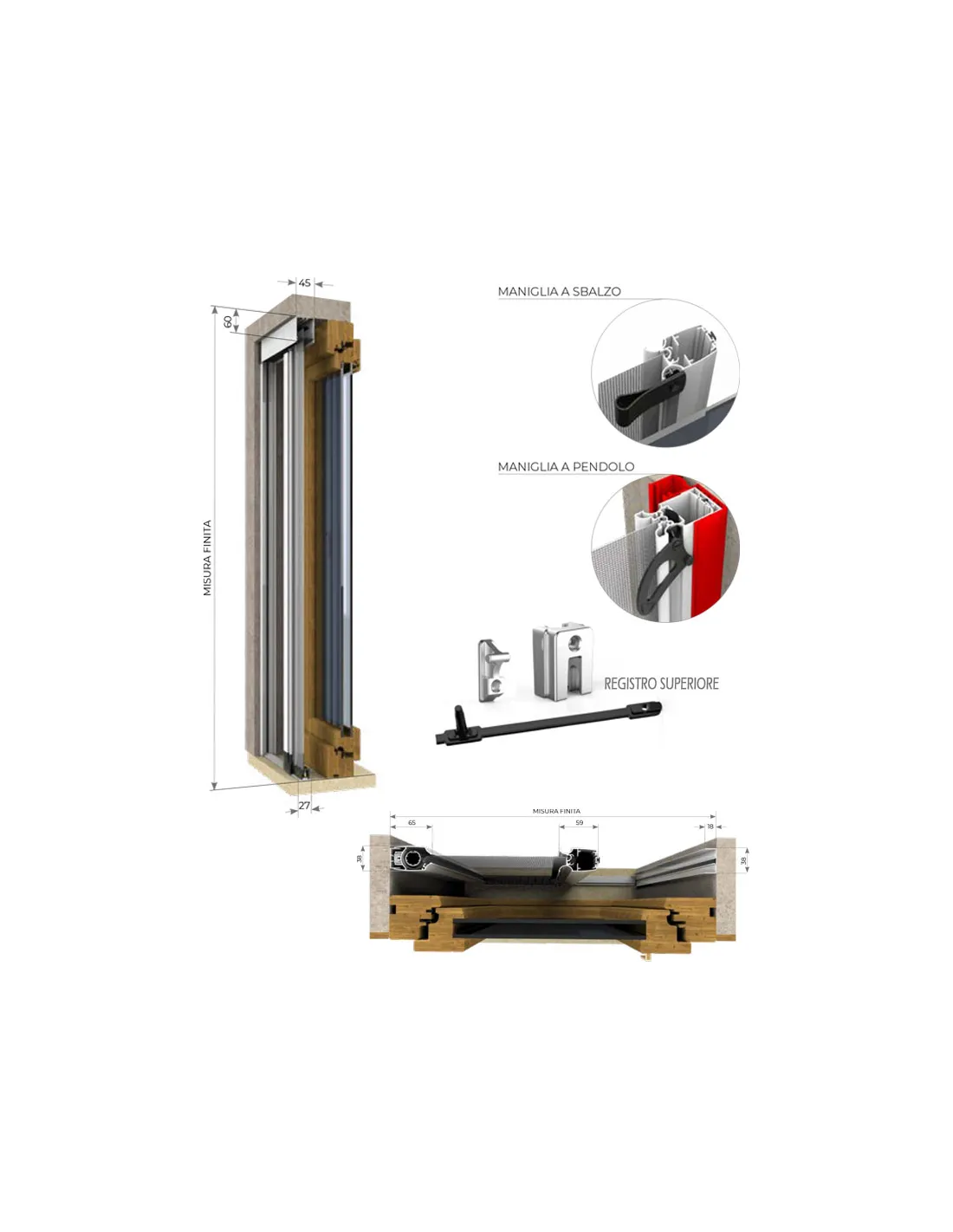 Questa caratteristica, insieme alla guida a terra ribassata da soli 5 mm, la rende particolarmente indicata per vani di frequente passaggio, anche in presenza di bambini o persone anziane.